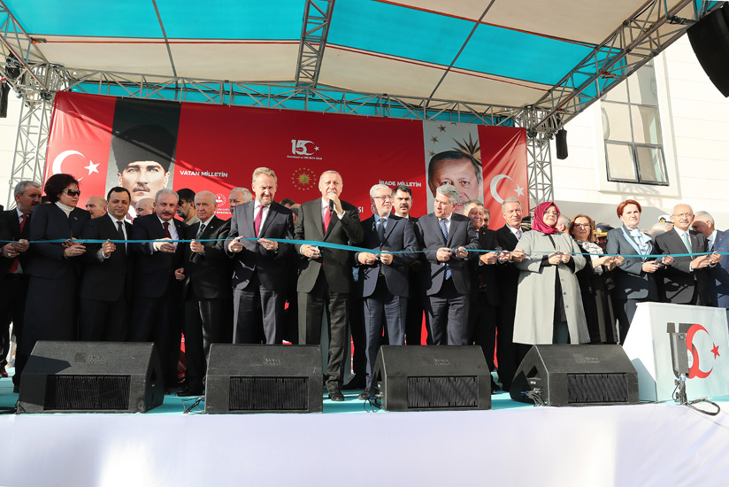 Törene, TBMM Başkanı Mustafa Şentop, Bosna Hersek Halklar Meclisi Başkanı Bakir İzzetbegoviç, CHP Genel Başkanı Kemal Kılıçdaroğlu, İYİ Parti Genel Başkanı Meral Akşener, BBP Genel Başkanı Mustafa Destici, Demokrat Parti Genel Başkanı Gültekin Uysal, MHP Genel Başkanı Devlet Bahçeli, Adalet Bakanı Abdulhamit Gül, Aile, Çalışma ve Sosyal Hizmetler Bakanı Zehra Zümrüt Selçuk, Ticaret Bakanı Ruhsar Pekcan, Çevre ve Şehircilik Bakanı Murat Kurum, Kültür ve Turizm Bakanı Mehmet Nuri Ersoy, Milli Eğitim Bakanı Ziya Selçuk, İçişleri Bakanı Süleyman Soylu, Sanayi ve Teknoloji Bakanı Mustafa Varank, Ulaştırma ve Altyapı Bakanı Mehmet Cahit Turhan, Cumhurbaşkanlığı İletişim Başkanı Prof. Dr. Fahrettin Altun, MİT Başkanı Hakan Fidan, Ankara Büyükşehir Belediye Başkanı Mansur Yavaş ve 15 Temmuz 2016’da Ankara’da şehit olanların yakınları ve gaziler katıldı.